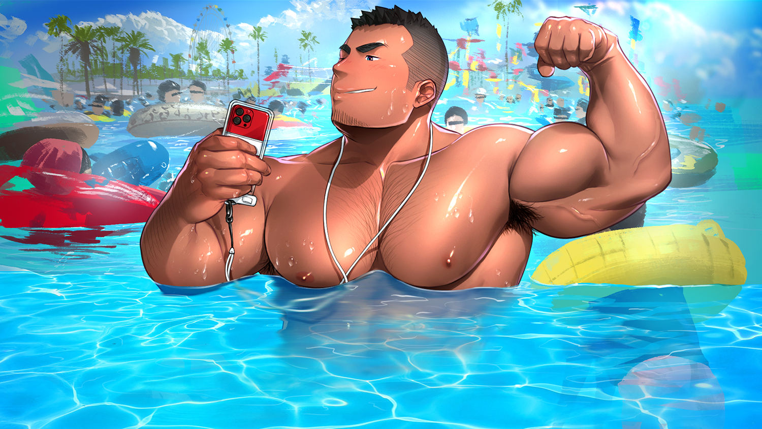 모유원지의 수영장에, 웨이트리프팅부의 동료들과 놀러 온 나.