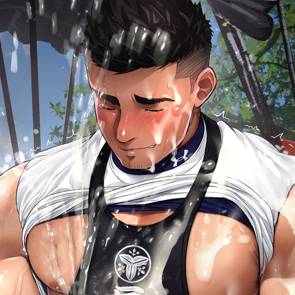 ดูเหมือนว่าในที่สุดเขาก็หยุดหลั่งน้ำอสุจิแล้ว ปล่อยน้ำอสุจิปริมาณมากออกมาเปื้อนใบหน้าหล่อเหลาและร่างกายกำยำของเขา