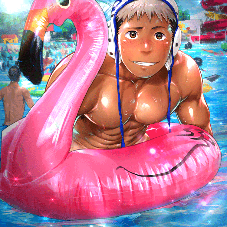 ด้านหลังห่วงยางว่ายน้ำ 🦩 คุณอาจมองเห็น...หรือซ่อน...อวัยวะเพศชายที่แข็งตัว 💪🏾 กำลังดิ้นรนอยู่บนผิวน้ำ...💛